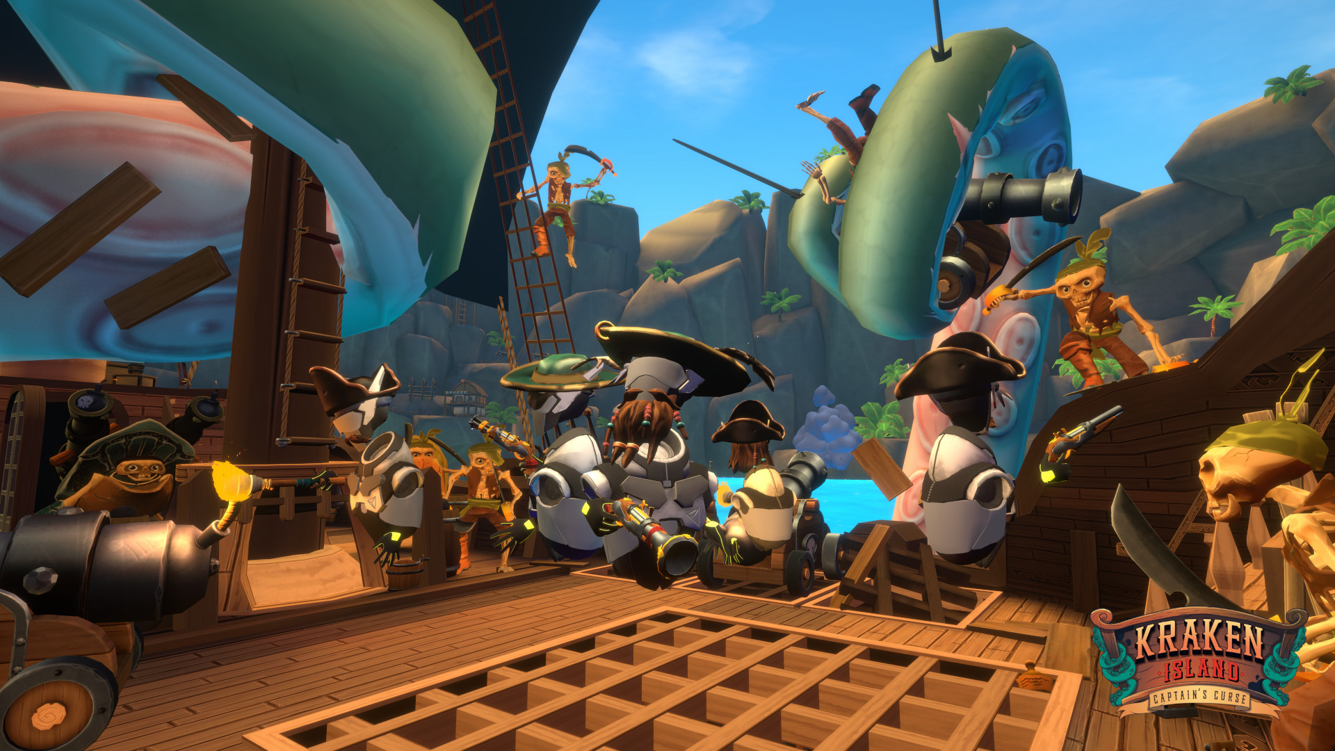 Cooperative pirate adventure for 2–6 players with easy onboarding and kid-friendly action in 30 minutes.